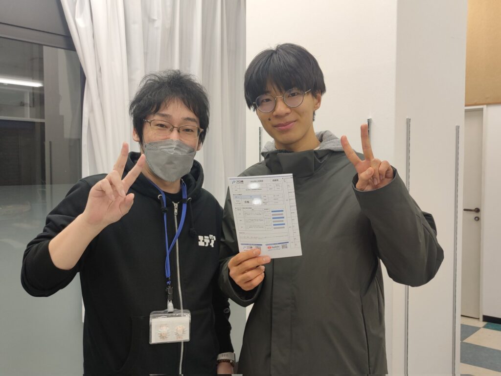 彼は高校1年生から通ってくれて、当時は正式にPython学習が無かったのでQUREOのJavaScript学習からスタート⇒プロ検JavaScriptレベル1から最上位のレベル6まで合格⇒Python学習をスタート⇒プロ検Pythonレベル1を合格⇒ちょうど大学受験のタイミングになりました。本当に受験勉強大変だったと思うけど、プログラミングが楽しいと言ってくれて毎週休まず通ってくれました。